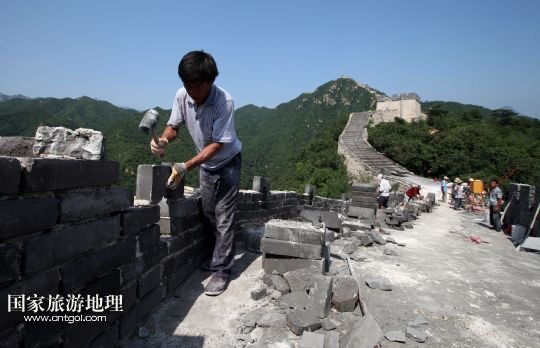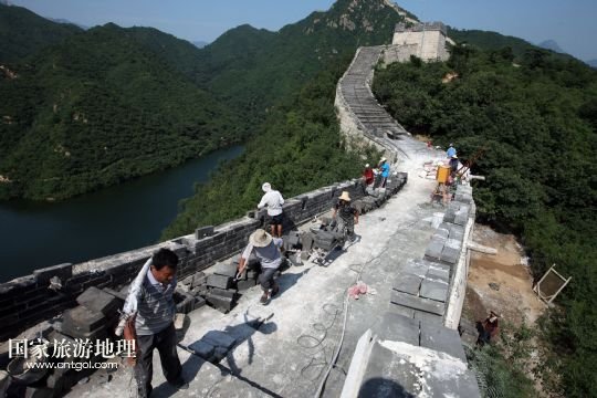 國(guó)家旅游地理 北京8月5日訊 8月4日下午,施工人員在北京懷柔西水峪古長(zhǎng)城進(jìn)行修繕。西水峪古長(zhǎng)城始建于明代,此次修繕部分總長(zhǎng)960米,在嚴(yán)格保障結(jié)構(gòu)安全以及原有風(fēng)貌的前提下進(jìn)行恢復(fù)性修繕,修繕后將達(dá)到對(duì)游客開(kāi)放攀登的標(biāo)準(zhǔn)。預(yù)計(jì)修繕工程將于今年10月底完成,屆時(shí)經(jīng)過(guò)專業(yè)部門驗(yàn)收后有望對(duì)外開(kāi)放。 /新華社發(fā)(卜向東 攝)