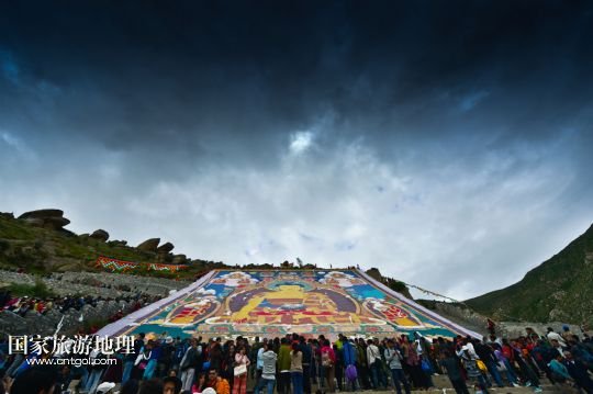 國家旅游地理 西藏拉薩8月6日訊 8月6日,拉薩哲蚌寺舉行展佛儀式。當(dāng)日,以西藏最大的格魯派寺廟哲蚌寺展佛為開端的雪頓節(jié)在拉薩拉開序幕。每年藏歷六月底七月初是西藏傳統(tǒng)的節(jié)日“雪頓節(jié)”。在藏語中,“雪”是酸奶子的意思,“頓”是“吃”“宴”的意思,“雪頓節(jié)”按藏語解釋就是吃酸奶子的節(jié)日,因此又叫“酸奶節(jié)”。因為“雪頓節(jié)”期間有隆重?zé)崃业牟貞蜓莩龊鸵?guī)模盛大的曬佛儀式,所以有人也稱之為“藏戲節(jié)”“曬佛節(jié)”。 /新華社記者 普布扎西攝