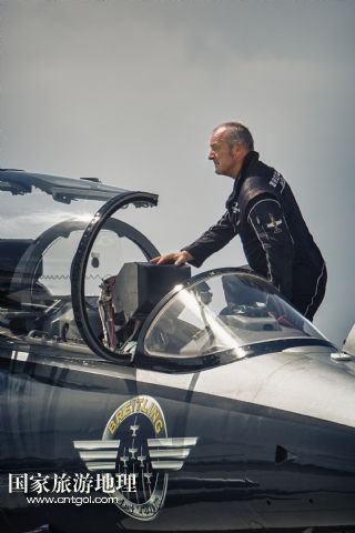 8月14日,在新疆克拉瑪依機(jī)場(chǎng),百年靈噴氣機(jī)隊(duì)隊(duì)長(zhǎng)雅克在保障機(jī)前向隊(duì)友致意。