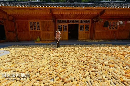 國家旅游地理 湖北恩施8月22日訊 8月22日,湖北省宣恩縣水田壩村二組農(nóng)民侯慶云在吊腳樓前晾曬玉米。初秋時節(jié),湖北省恩施土家族苗族自治州宣恩縣農(nóng)民搶抓時節(jié),對玉米等農(nóng)作物進(jìn)行收獲晾曬,山鄉(xiāng)家家戶戶忙“曬秋”,到處是一派豐收景象。 /新華社發(fā)(宋文 攝)