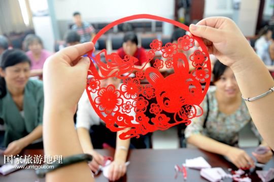 國家旅游地理 安徽合肥9月17日訊 9月17日,非遺剪紙傳人侯宏妹向?qū)W員講解“花好月圓”剪紙作品的制作。當(dāng)日,合肥市清溪路社區(qū)邀請非物質(zhì)文化遺產(chǎn)剪紙傳人侯宏妹來到社區(qū)向剪紙愛好者傳授技藝,并一起創(chuàng)作中秋題材的剪紙作品,迎接中秋佳節(jié)。 /新華社記者劉軍喜攝