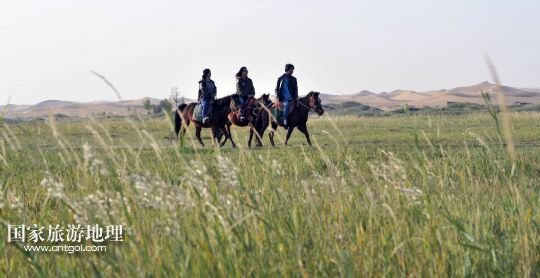 國家旅游地理 內(nèi)蒙古阿拉善9月29日訊 9月28日,游客在通湖草原景區(qū)騎馬。通湖草原景區(qū)位于內(nèi)蒙古和寧夏交界的騰格里沙漠腹地,景區(qū)匯集了沙漠、草原和湖泊,自然景觀獨特,吸引了眾多秋游的游客。 /新華社發(fā)(劉玉和 攝)
