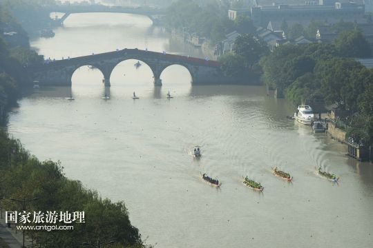 國家旅游地理 浙江杭州11月9日訊 11月9日,參加500米直道競速賽的龍舟隊從運(yùn)河拱宸橋畔出發(fā)。當(dāng)日,2013年中國龍舟公開賽年度總決賽(杭州站)在京杭大運(yùn)河杭州拱宸橋段舉行。 /新華社發(fā)(李忠 攝)