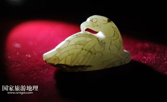 這是龍崗寺遺址出土的國(guó)家一級(jí)文物——漢代玉鷹(3月27日攝)。