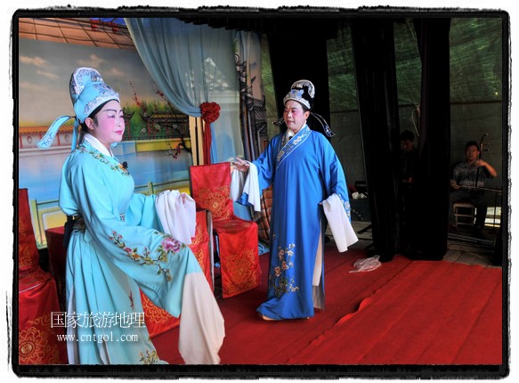 江西省婺源縣賦春鎮(zhèn)源頭村景區(qū)邀請(qǐng)了安徽黃梅戲劇團(tuán)在村門(mén)口為村民表演輪翻上演黃梅戲】