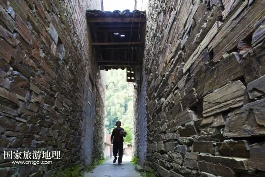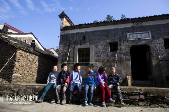 國家旅游地理 江西九江5月12日訊 5月12日,孩子們坐在土目源村的老房子前玩耍??沼牡纳焦龋幌⒌南?,斑駁的石墻,古樸的石屋。在江西省北部山區(qū),有一座石屋山居的古村落——都昌縣大港鎮(zhèn)土目源村。