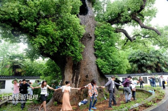 國家旅游地理 江西上饒5月18日訊 5月17日,游客在江西省德興市海口鎮(zhèn)??诖迩旯耪僚酝嫠?。江西省德興市海口鎮(zhèn)??诖逵幸豢?800多歲“高齡”的巨型古樟樹,歷史上曾遭受過多次雷擊、火災等,其中最近的一次發(fā)生在2010年10月1日,由于村內孩童進入可容納幾十人的樹洞內玩耍,不慎引發(fā)火災,致使大火從樹洞里燒起,讓這棵千年古樟幾近滅頂。此后,當?shù)卮迕褡园l(fā)捐款近6萬元,請來有關專家救治。經過近4年的精心護救,如今這棵千年古樟再度逢春,枝繁葉茂,吸引了各方游客前來觀賞。 /新華社發(fā)(卓忠偉 攝)