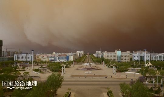 國(guó)家旅游地理 甘肅玉門(mén)5月23日訊 5月23日,在甘肅玉門(mén)市,突如其來(lái)的沙塵籠罩了整個(gè)城市。當(dāng)日上午,受新疆低槽冷空氣的影響,甘肅玉門(mén)境內(nèi)天空出現(xiàn)罕見(jiàn)的云層奇景和沙塵天氣,原本非常晴朗的藍(lán)天,霎時(shí)天昏地暗,同時(shí)伴有6至7級(jí)西風(fēng),能見(jiàn)度只有500米。新華社發(fā)(楊旭升 宋常青 攝)