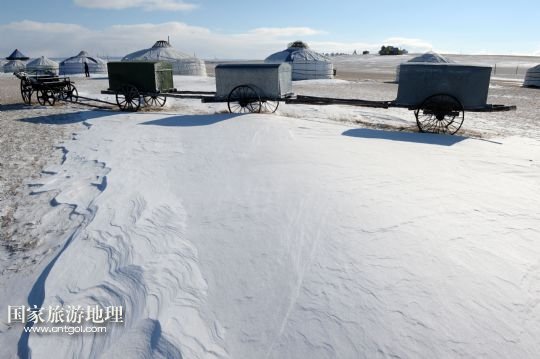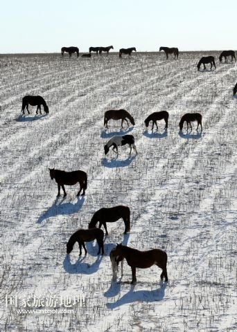 初冬的內(nèi)蒙古呼倫貝爾草原 蔚藍的天空映白雪(圖)