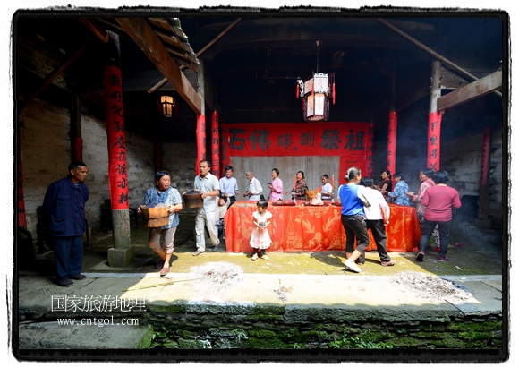 國家旅游地理 江西婺源(上饒)5月31日訊(特約記者王國紅 通訊員程新德攝影報道) “祭祀開始、鳴炮奏樂、祭拜、主持人講話、結束鳴炮”,5月25日,農(nóng)歷四月初八,石佛村烏飯節(jié),村民將自家精心制作的烏飯端進祠堂祭祀。江西省婺源縣段莘鄉(xiāng)石佛村每年都要舉行烏飯祭祖活動,各家各戶將自家精心制作的烏飯端進祠堂……