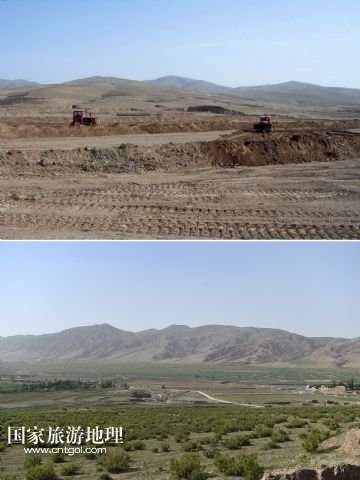 國家旅游地理 寧夏中衛(wèi)6月9日訊 上圖上:2014年5月的資料照片上甘鹽池一片荒涼;上圖下:6月4日,記者拍攝的甘鹽池已是綠意盎然(拼版照片)。寧夏海原縣甘鹽池地處黃土高原干旱帶上,平均海拔約2100米,年均降雨量在280毫米左右,自然災(zāi)害頻繁,十年九旱。2014年以前,這片近12萬畝的土地可謂一片荒蕪。2014年,海原縣甘鹽池管委會(huì)通過確立“盆地改良、種草養(yǎng)羊、綠化美化、提升人氣”的工作思路,對(duì)2.2萬畝砂石地和山坡地進(jìn)行改良和治理,如今甘鹽池滿滿的綠意讓人為之一振。 新華社記者 李然 攝