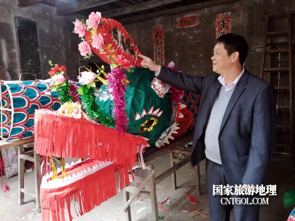 傳統(tǒng)文化藝人鄒道德老師準備去接“龍”。鄒善水 攝