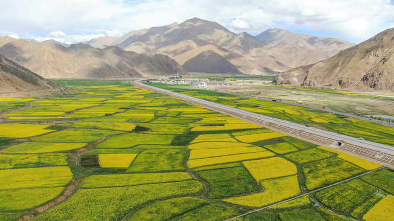 西藏各地的油菜花盛開,呈現出生機勃勃的夏日美景
